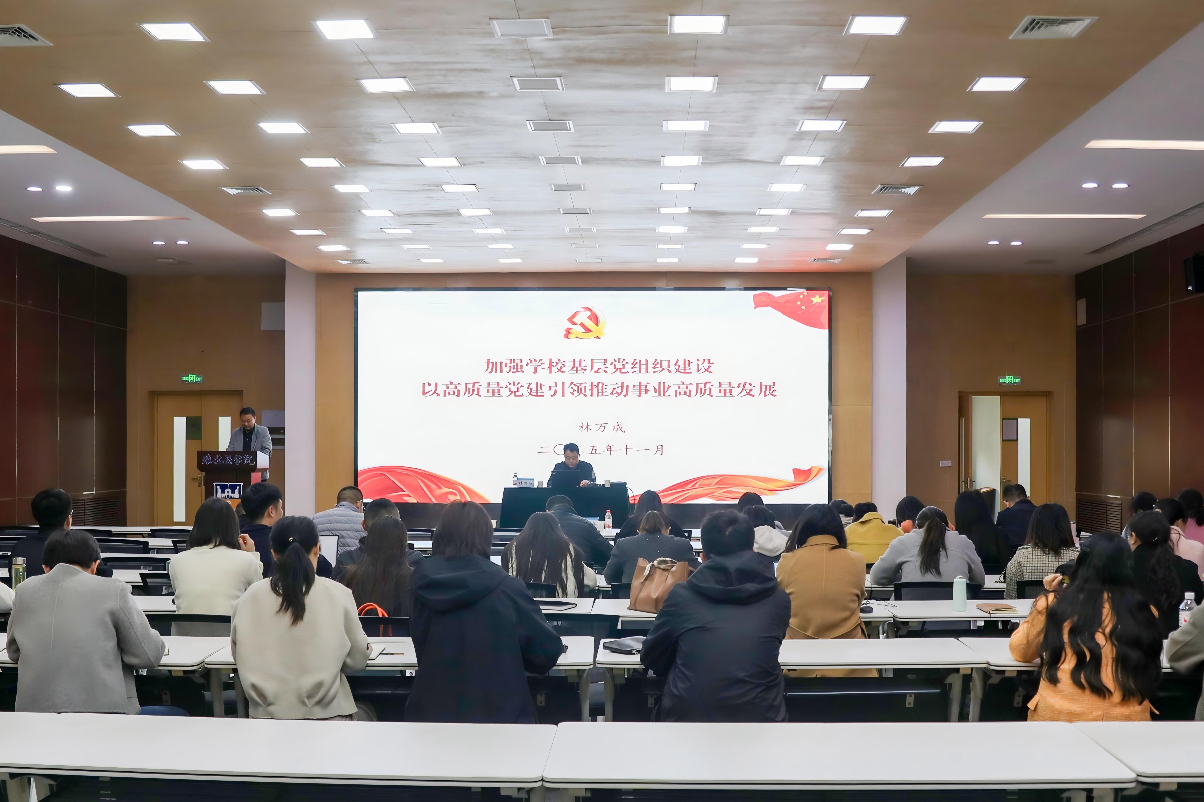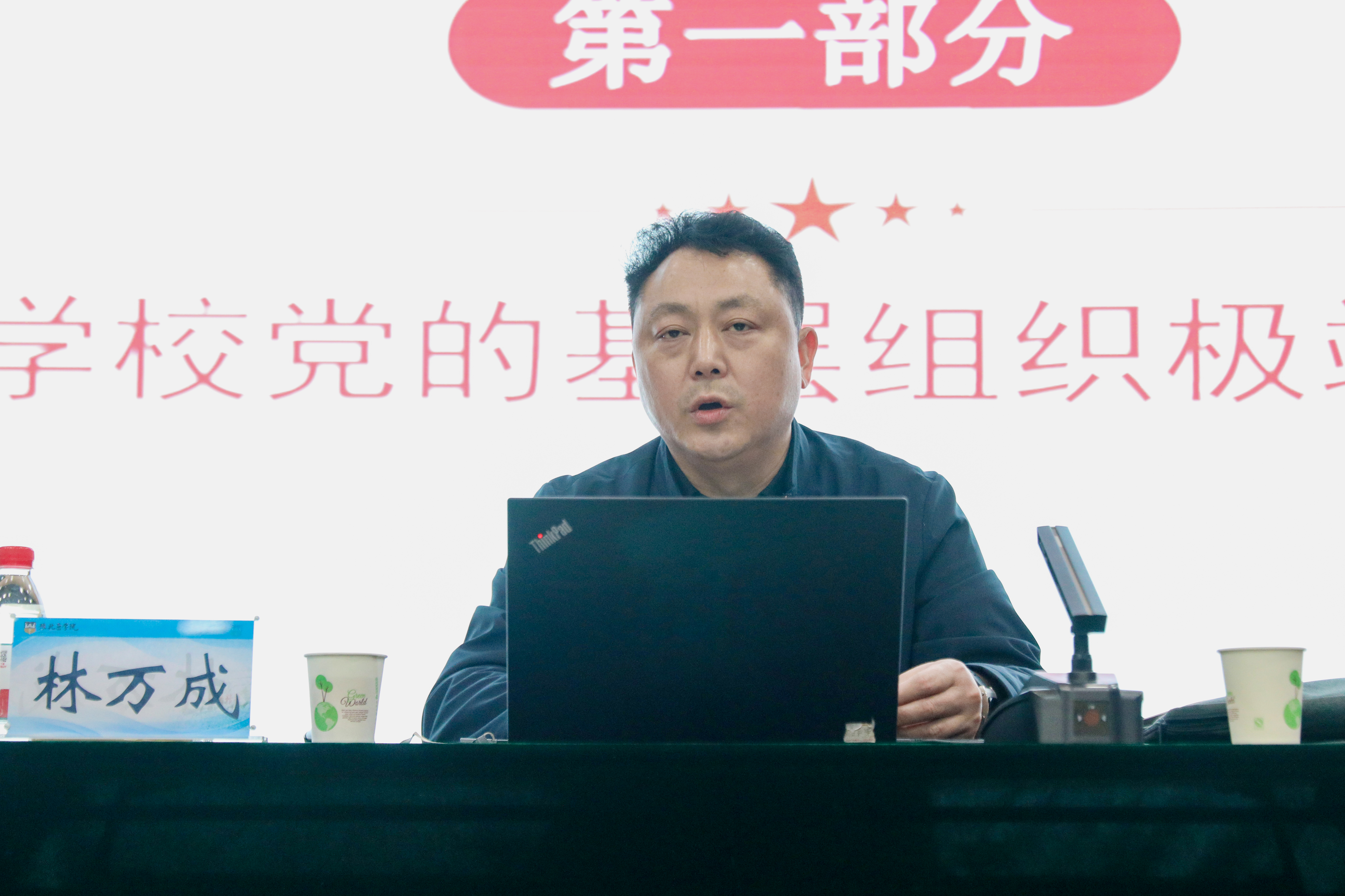 本次培训分为视频学习和专题辅导两个环节。上午,参训人员集中观看了新时代高校党建“双创”工作专题讲座,以及全国样板支部宣传片,深入学习了先进高校在党建示范创建和质量创优方面的经验做法。 下午,河南财经政法大学党委巡察办副主任、历史学博士、马克思主义理论博士后、副教授林万成应邀作题为《加强学校基层党组织建设,以高质量党建引领推动事业高质量发展》的专题辅导。林万成围绕学校基层党组织建设的极端重要性、建强基层组织的路径方法、创建示范性基层党组织的实践要点等方面,系统阐释了新时代高校党建工作的理论逻辑与实践路径。他结合多年党建研究和政策实践,深入解读了基层党组织在政治引领、组织保障、推动发展等方面的关键作用,为参训人员提供了丰富的理论指导和实操借鉴。